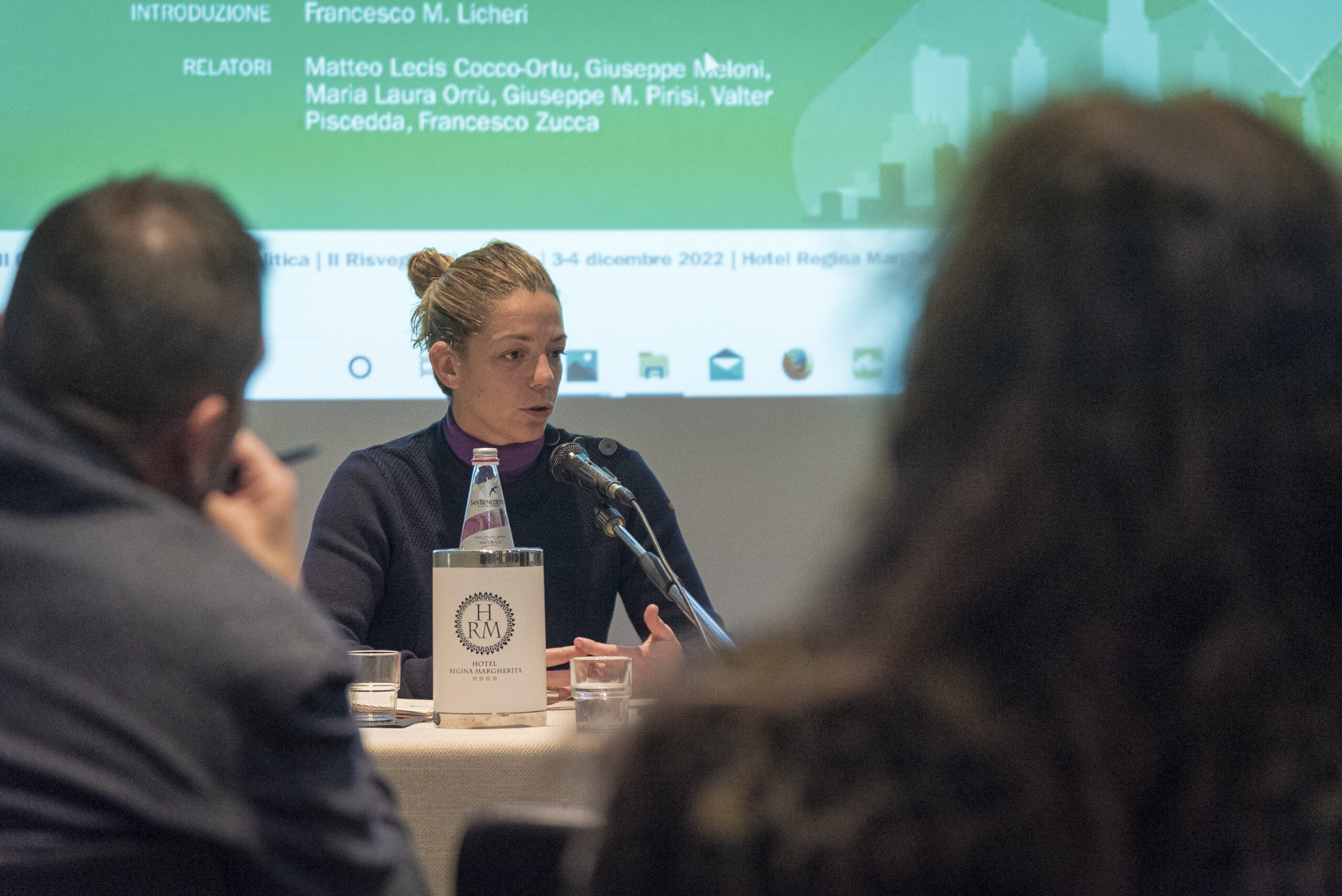 Ho esteso il design a vari media, comprese grafiche individuali per ogni discussione del panel, banners roll-up per le entrate della conferenza e proiezioni su schermi digitali da visualizzare durante le sessioni.